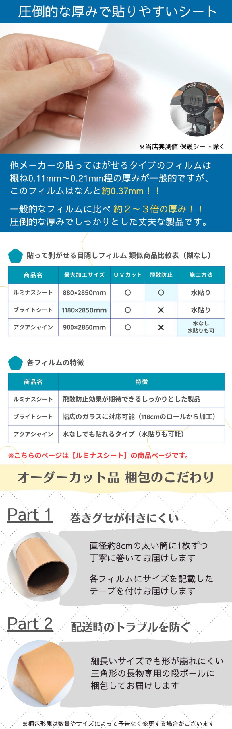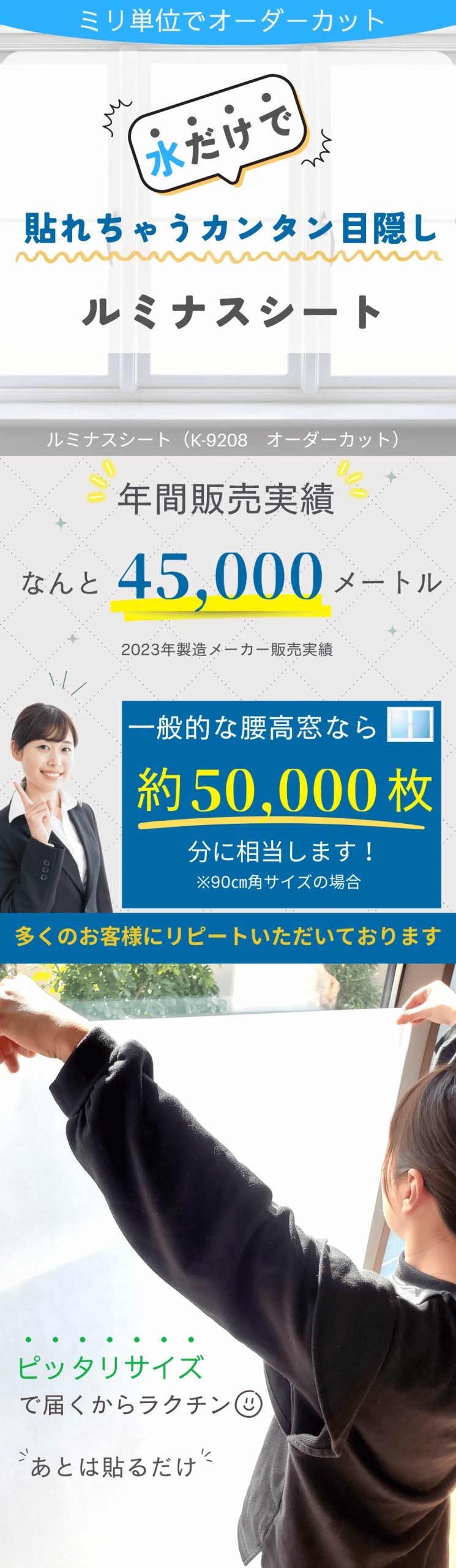 ルミナスシート 貼ってキレイにはがせる カンタン目隠しシート 880mm幅(オーダーカット) 品番 K-9208