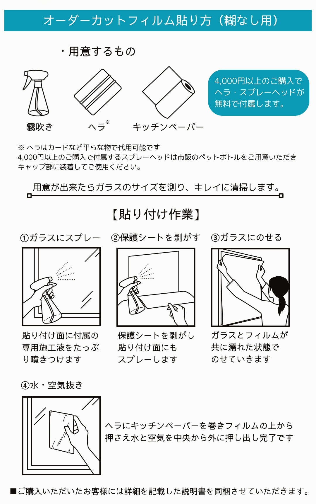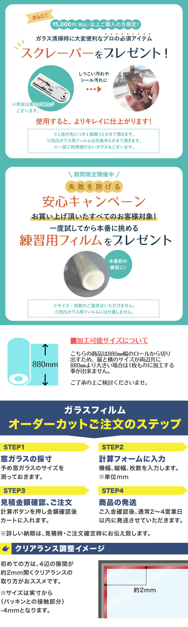 ① お客様の声をフィルムを貼り付けたガラスの写真と共に投稿いただいた方全員にもれなく、クオカード300円分をプレゼントいたします。