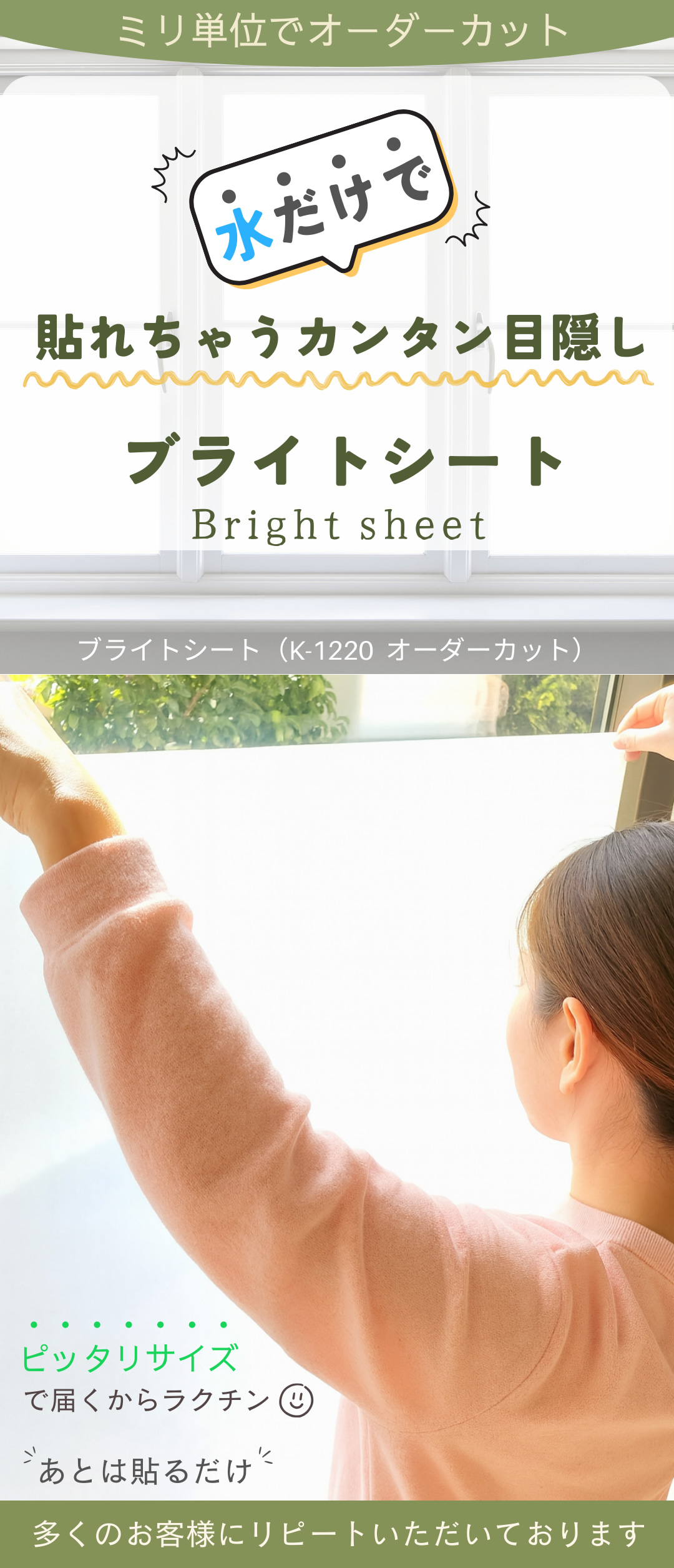 ブライトシート 貼ってキレイにはがせる カンタン目隠しシート 1180mm幅(オーダーカット) 品番 K-1220