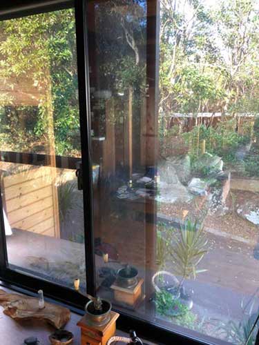 透明ガラスですが、外部からはミラーになって部屋の中が見られなくなりました。