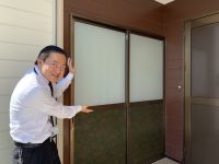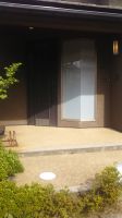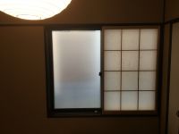 息子と頑張って玄関の縦長のガラスに張り替えしました。