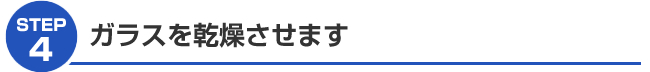 ガラスの水分をキッチンペーパーで拭きとります。全体的にまんべんなく拭き取ります。 ポイント |