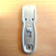 | スクレーパーはガラスの汚れを落とすのに大変便利な道具です。 お近くのホームセンターで多種類販売されています。 小さいもので2~300円位から購入できます。 写真は小さいタイプで基本的にピンポイントで汚れを落とす時に使用します。 ガラス洗浄はフィルムを貼り付ける上での重要ポイントです。綺麗にすればするほど仕上がりが美しくなります。 出来れば刃幅が10センチくらいあるものがお勧めです。 広い施工面積でも気持ちよく作業が出来ます。 より綺麗にしたい場合は施工面全体にまんべんなくかけると完璧です。 プロは必ず持っている必須アイテムです。 (強化ガラスなどに使用すると傷が付く恐れがある為ご注意下さい) ※ご使用の際には刃先で手などを切らないように気をつけましょう。 |