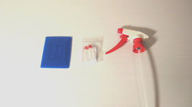 購入時に付属している施工キット ★ヘラ(水抜き用スキージー) ★スプレーヘッド ★ミニ施工液 |