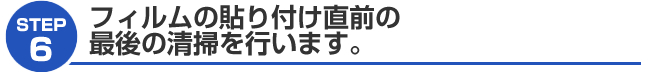 貼り付け直前に、施工液を全体に万遍なく噴霧して、すぐに青ヘラやワイパーで水分を切ります。一定方向に(片道)に切るのがコツです。 この作業でほこりや残った洗浄液を洗い流します。 |