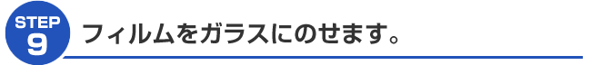 フィルムの接着面をガラスにのせていきます。(軽く力を入れず置く感じ) |